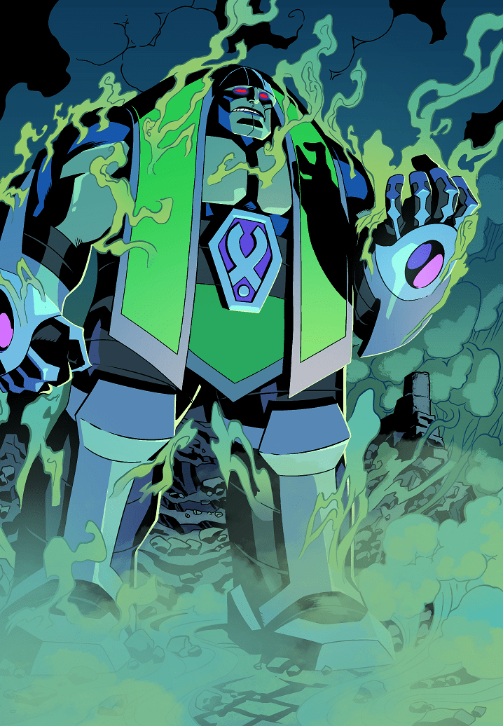 It’s really up to you if you want them to be the same person or not. Given the legacy nature of the current Crusaders, perhaps Eternos is the younger sibling of Eterno? Or maybe even his son? For the sake of this writeup, I’m going to assume that Eternos has access to all the same powers and weaponry as Eterno but with the enhanced physical attributes of Eternos.