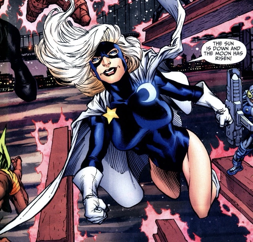 She later returned alongside a massive assortment of villains to wage war against the Justice Society, assembled as part of a long-term plan by the Fourth Reich. Blue Moon targeted Power Girl in their clashes, who ended up taking her out even as the first part of the Reich’s plan succeeded.