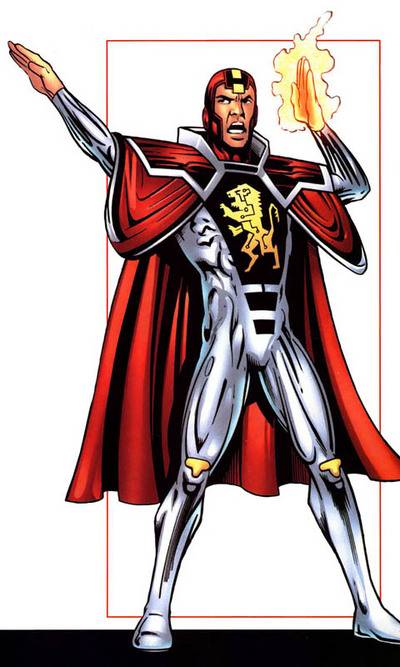 After foreseeing that Mys-Tech would grow to dominate the entire universe, the enigmatic Time Guardian summoned Albion to join with a group of other superheroes such as Death’s Head II, Dark Angel, Killpower, and Motormouth to a region of No-Space located outside normal time and space. The group was dubbed the Dark Guard and Albion aided the team in saving Earth from the forces of Mys-Tech.